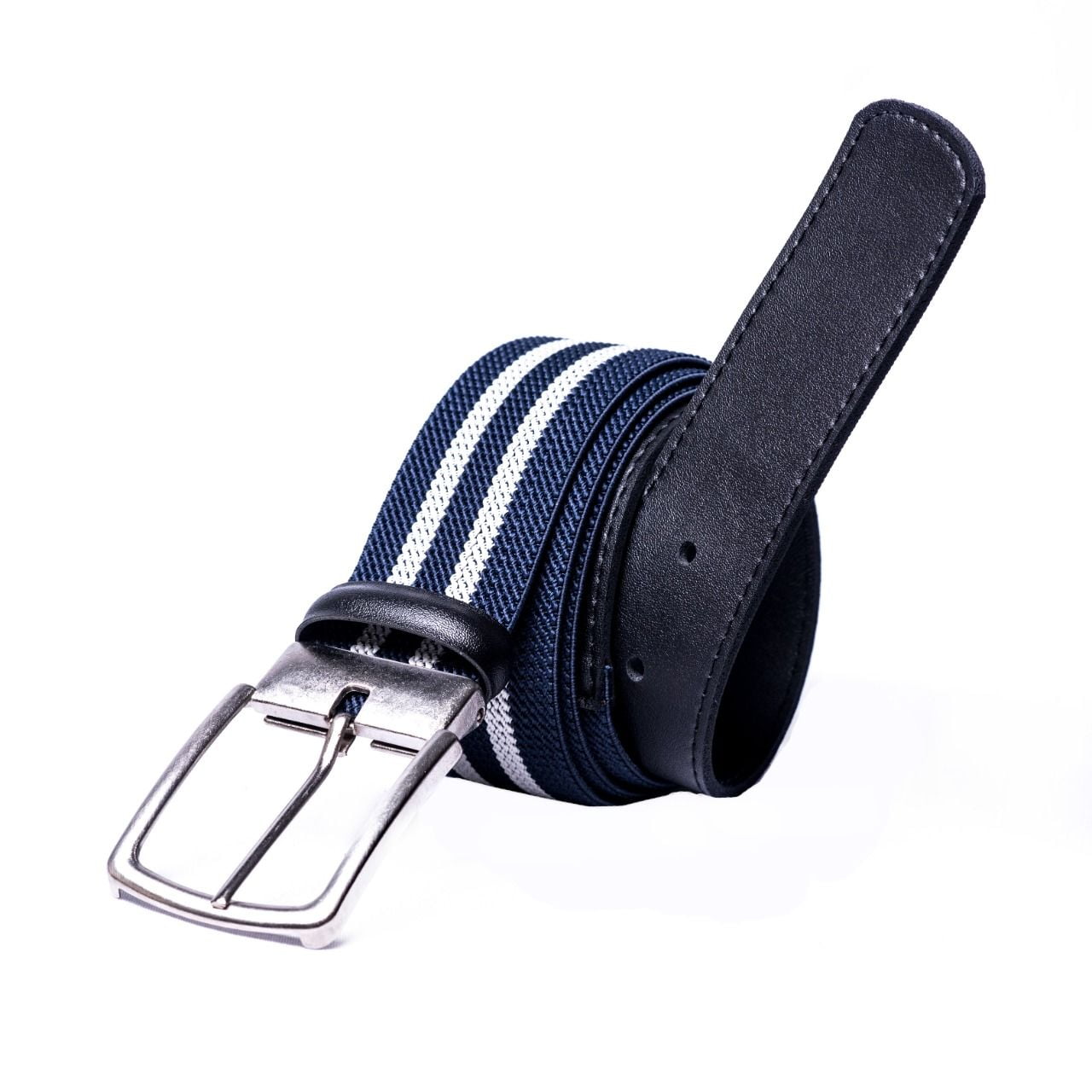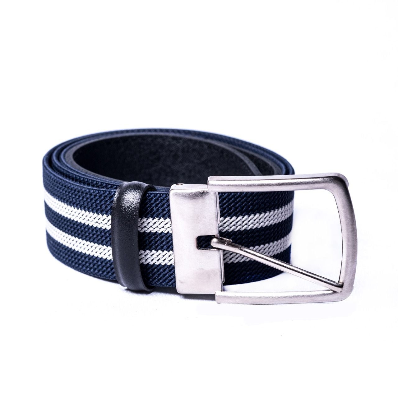 Cinto Casual Lona Elástico Detalhes Couro Marinho